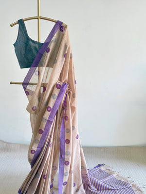 'BINDU : Beige' Mangalagiri Cotton Saree