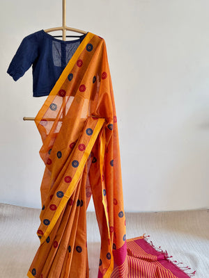 'BINDU : Ochre' Mangalagiri Cotton Saree