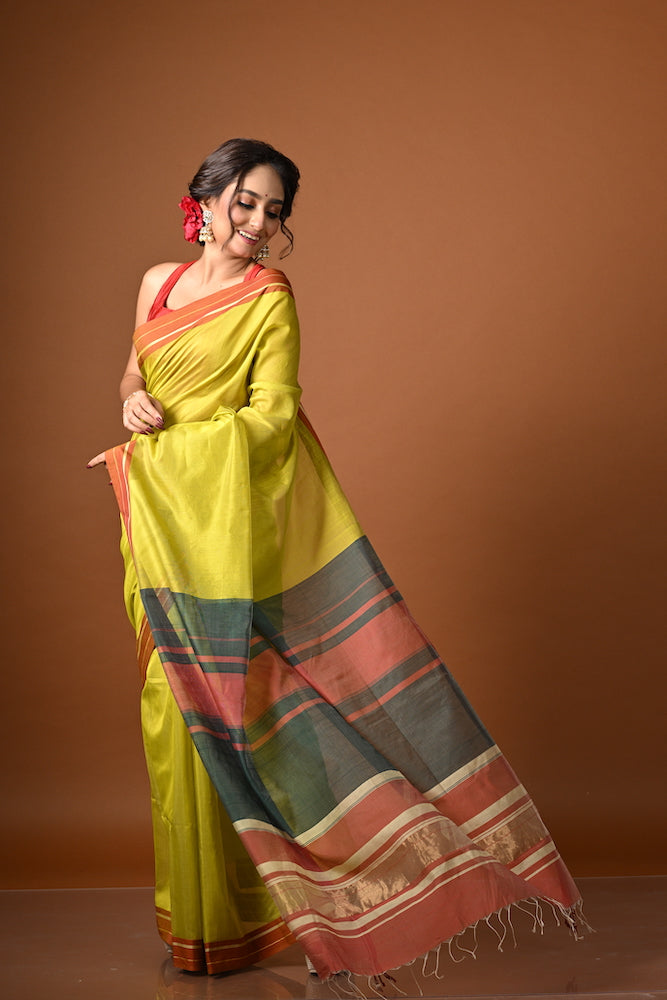 'TULA : Yellow' Mangalagiri Cotton Saree