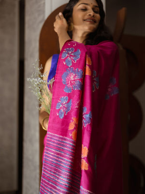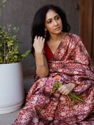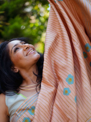 Hoo Nodi is a collection of handwoven and hand block printed silk sarees inspired by the floral sarees of the 1990s. Rooted in memory and made for the present, each piece invites a slower way of seeing and dressing. Crafted responsibly using natural fibres and eco friendly dyes, the collection celebrates florals and femininity through thoughtful design, subtle variation, and the quiet beauty of things made by hand.