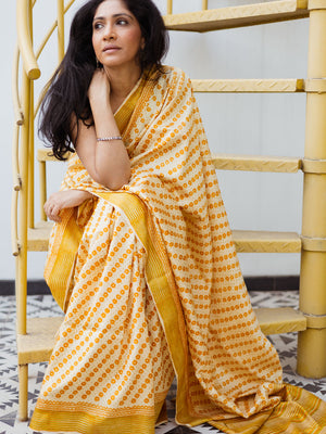Hoo Nodi | PARIJATA: Yellow Silk Saree