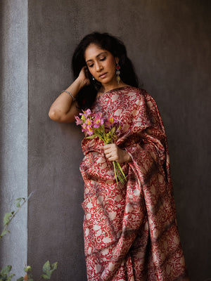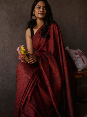 Hoo Nodi | KANAGALE: Rust Silk Saree