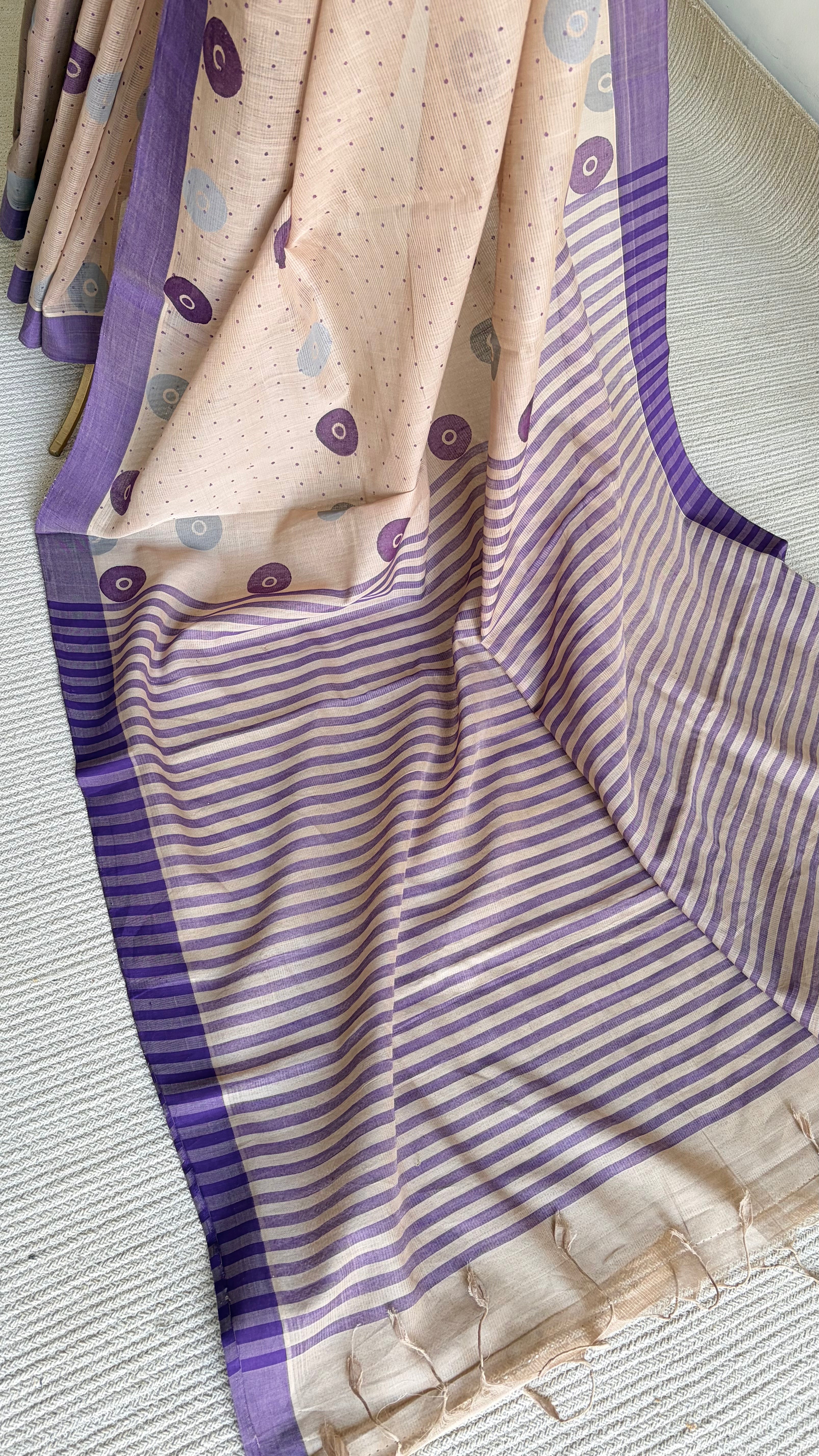 'BINDU : Beige' Mangalagiri Cotton Saree