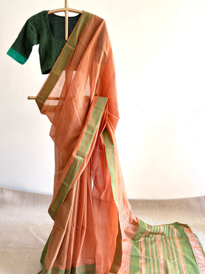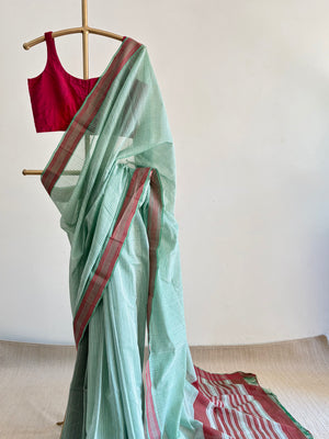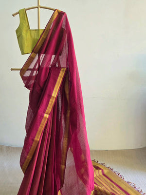 Mangalgiri is about 400 year old traditional craft of weaving cotton sarees with silver or gold zari nizam borders using pitlooms in Mangalgiri, a town in the Guntur district of Andhra Pradesh. There are non-zari versions too. This weave has received a Geographical Indication tag.