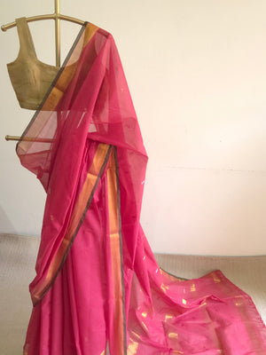 'ROMINI:Pink' Handwoven Venkatagiri Cotton Saree