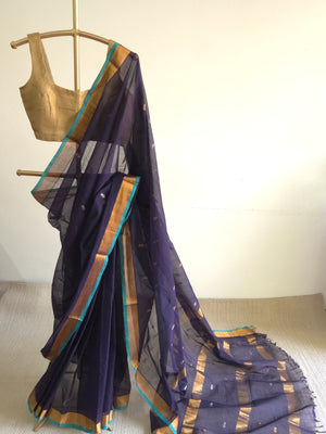 'PAVIKA:Blue' Handwoven Venkatagiri Cotton Saree