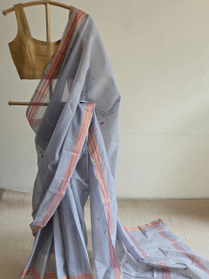 'KAUSHIKI: Grey' Handwoven Venkatagiri Cotton Saree