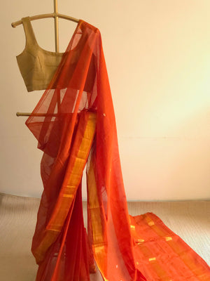 'PRANHITA:Red' Handwoven Venkatagiri Cotton Saree