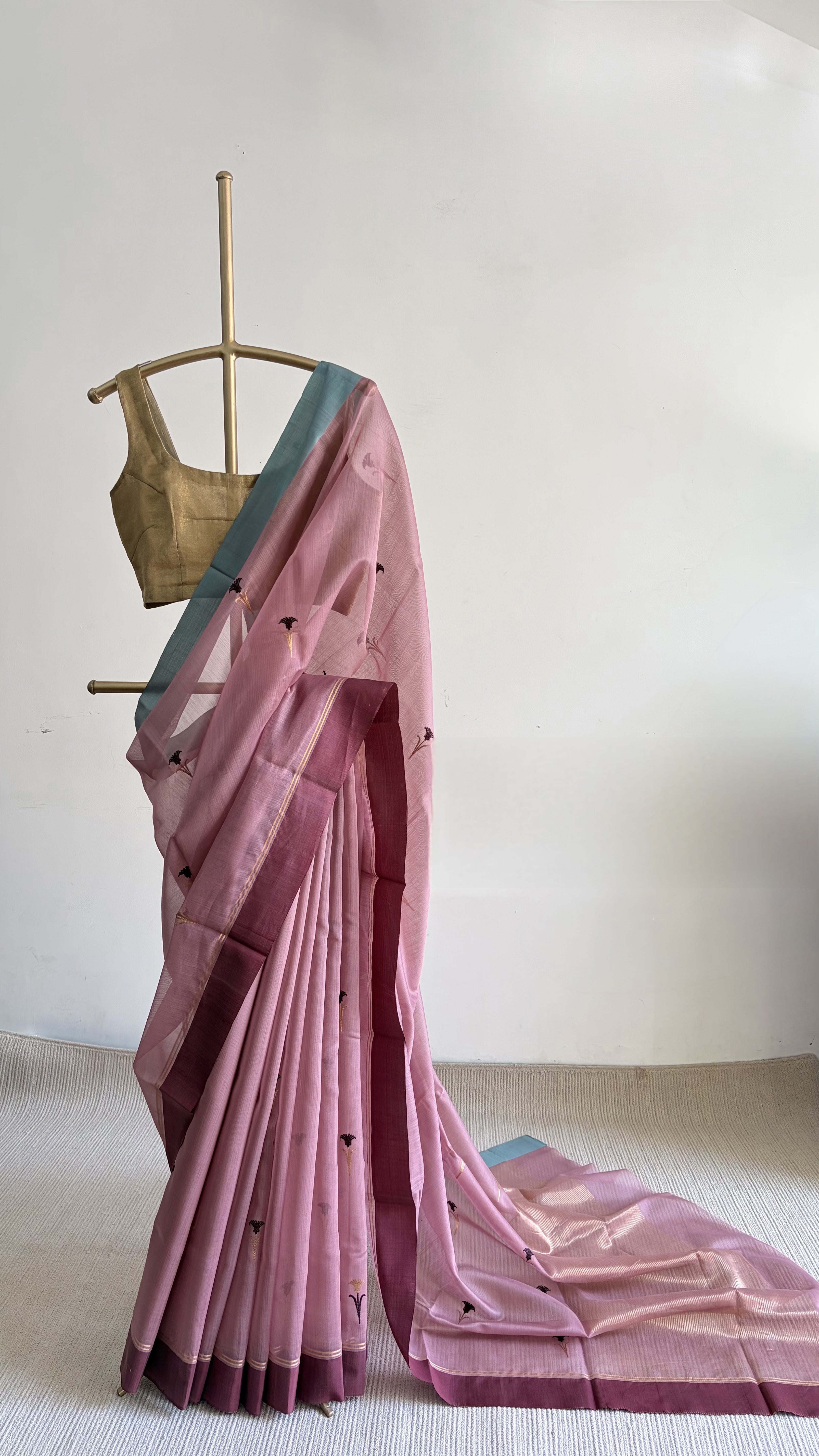 - Colour: Mauve, Deep Plum, light steel blue and Gold zari