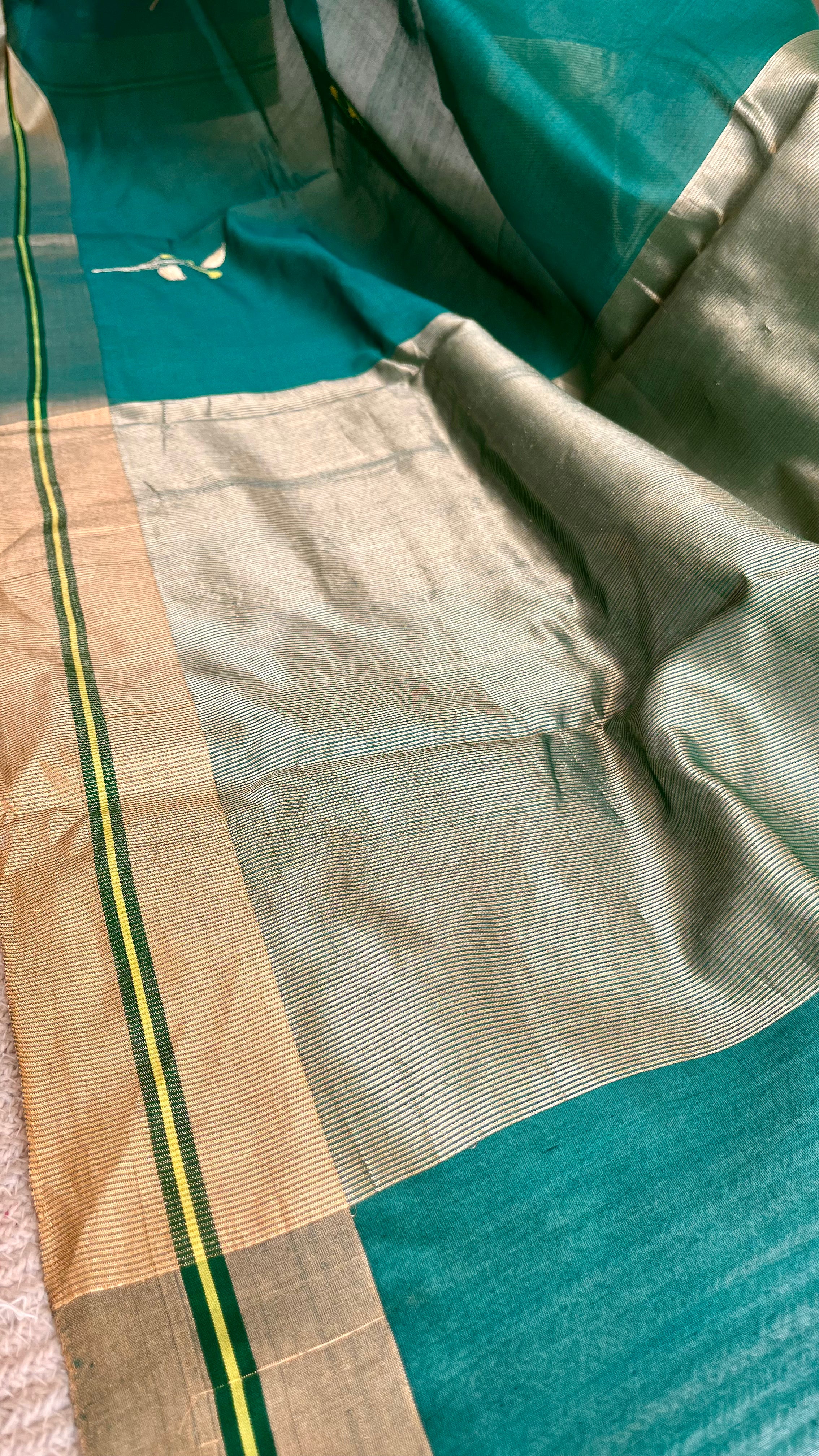- Colour: Dark teal, Lime yellow, Gold zari