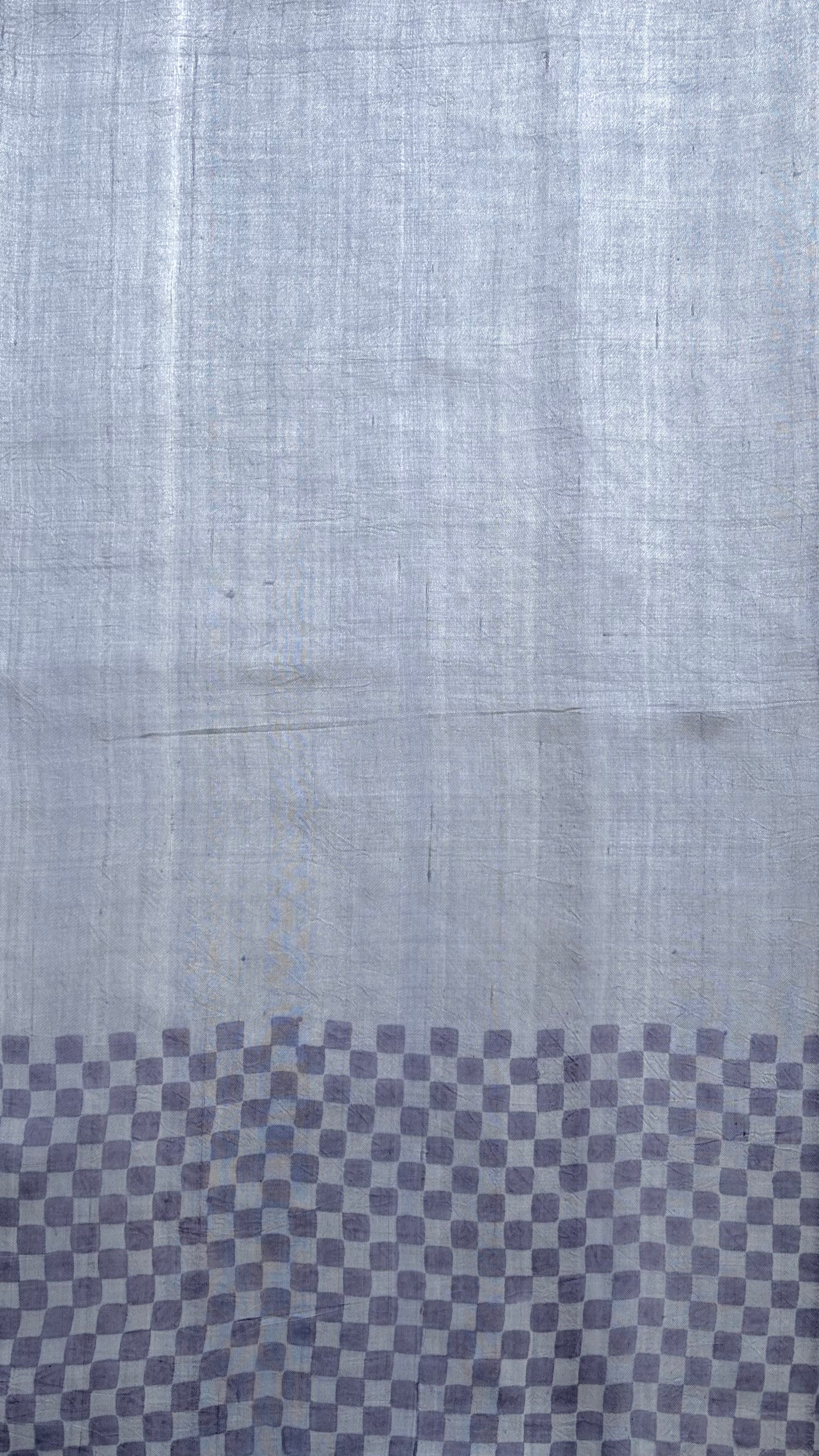 The pallu introduces a compact chessboard-inspired pattern, adding structure and contrast without disrupting the saree’s understated flow. Echoed along the borders of the blouse piece and paired with a clean, plain body, these elements complete the ensemble with thoughtful cohesion. Timeless and composed, this piece reflects an appreciation for detail-driven design and refined craftsmanship.