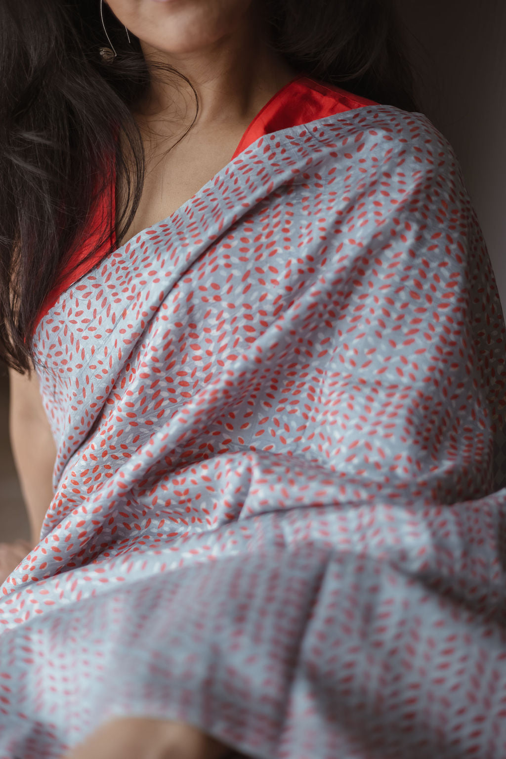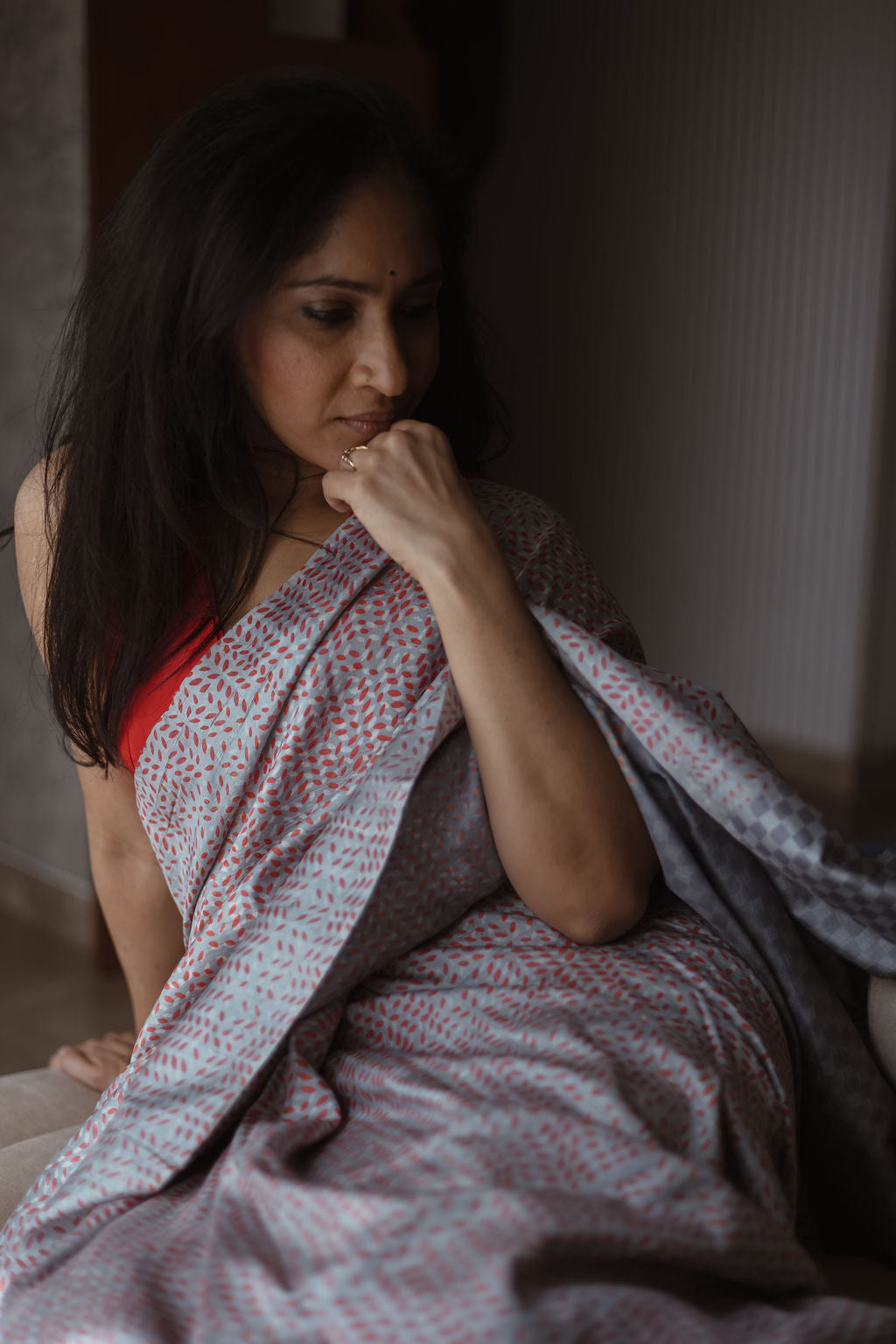 Each piece is made slowly by hand, allowing the fabric, colour, and print to come together with subtle variation. These differences are intentional and are part of what makes every saree unique.
