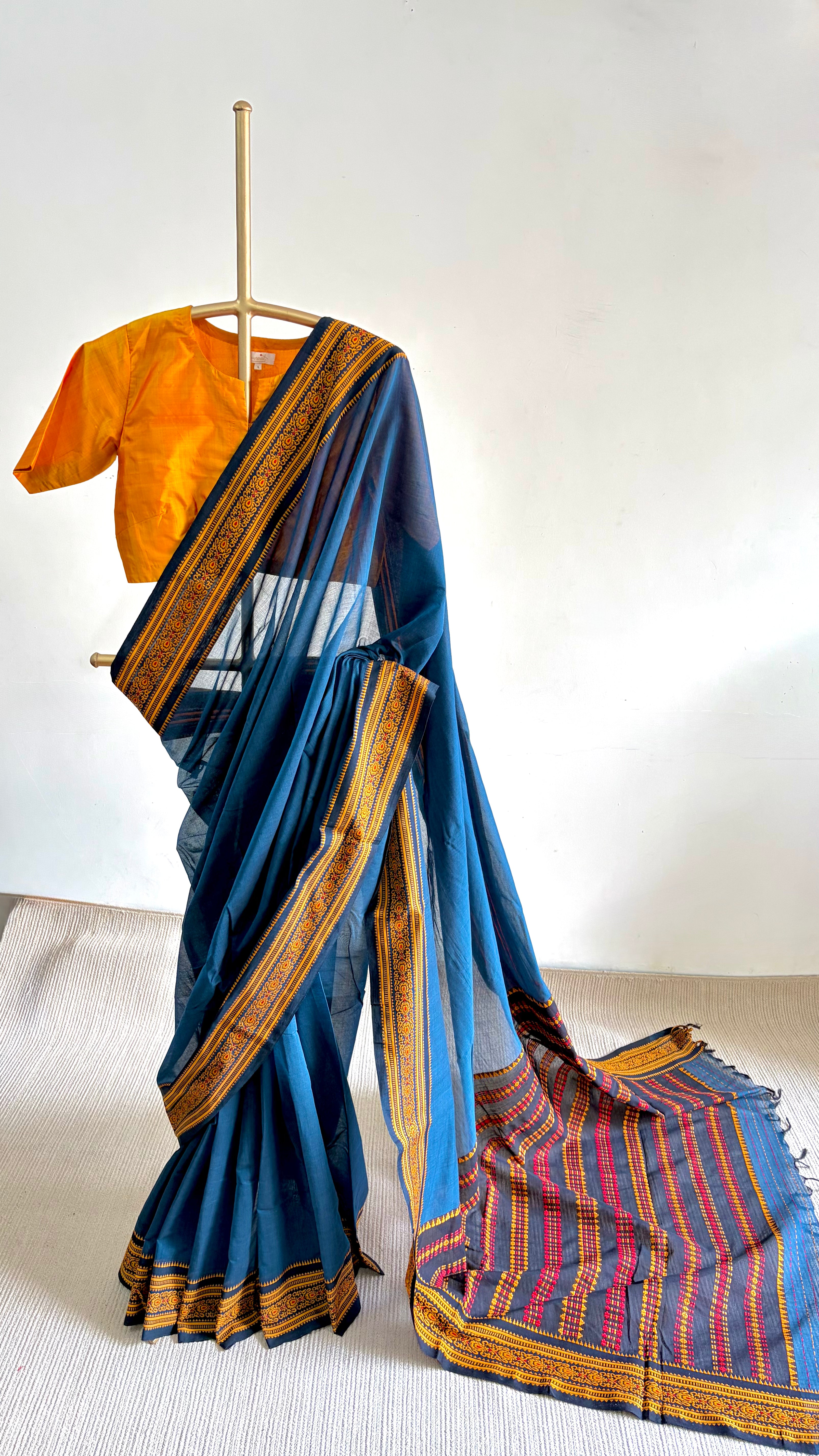 'JAMINI: Blue' Handwoven Begumpuri Cotton Saree