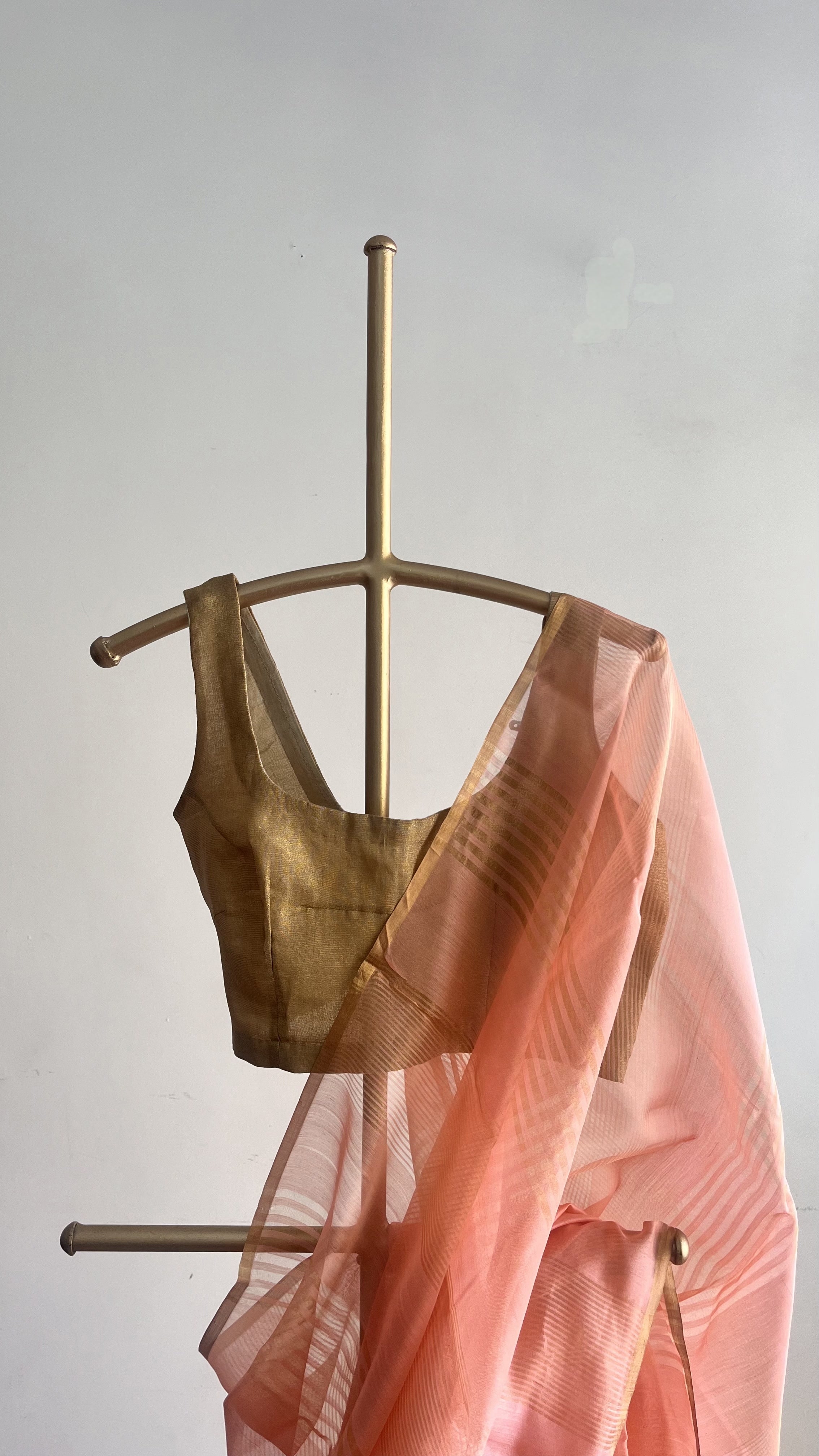 - Colour: Peach- Pink, Gold Zari